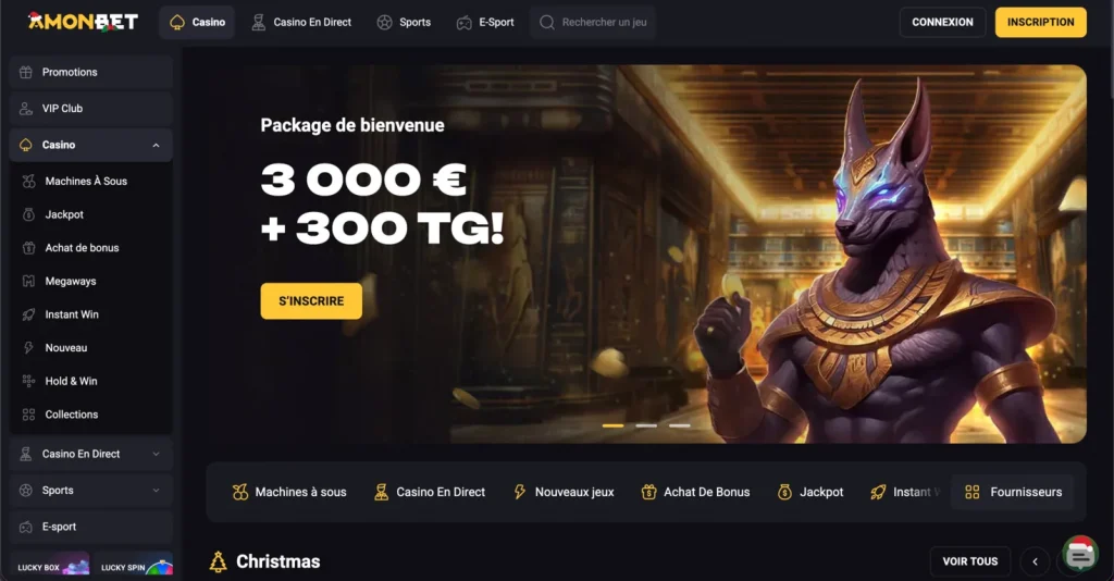 | Amon Casino | Pack de bienvenue de 500 € réparti sur 4 dépôts + 200 tours gratuits | 9,2/10 |